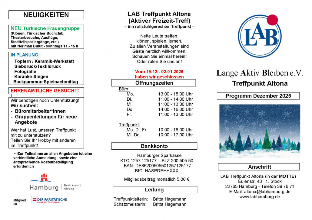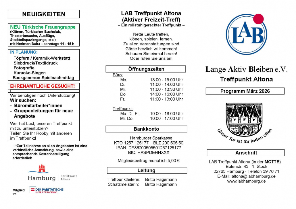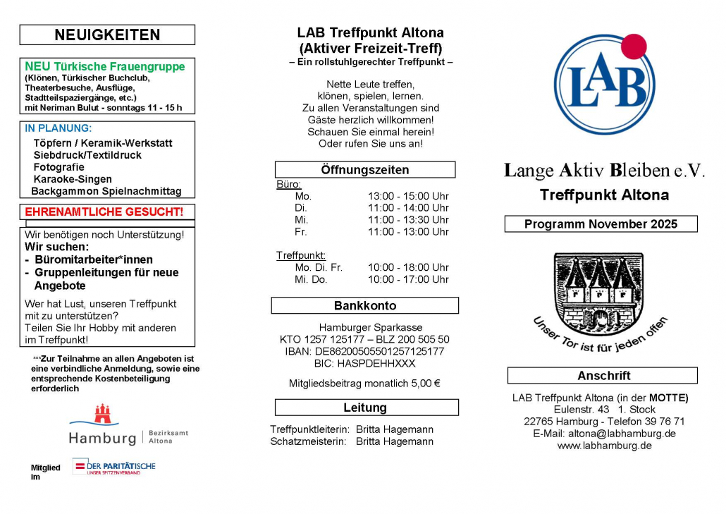 Seit der Gründung als erster Treffpunkt des LAB-Vereins im Jahr 1966 widmet sich der LAB-Treffpunkt Altona der „älteren“ Generation, um dieser Zielgruppe die „Freizeitgestaltung für das Leben nach der Berufstätigkeit“ anzubieten.