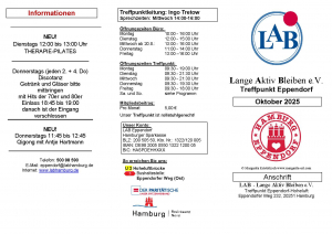 Aufgrund der Sanierungsmaßnahme im Hamburg-Haus, hat der LAB Eppendorf bis voraussichtlich Ende des Jahres folgende Gruppen aus dem LAB Eimsbüttel aufgenommen:
