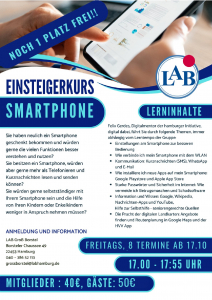 Im Smartphone-Einsteigerkurs für Android, der am 17.10.25 beginnt ist noch ein Platz frei!
