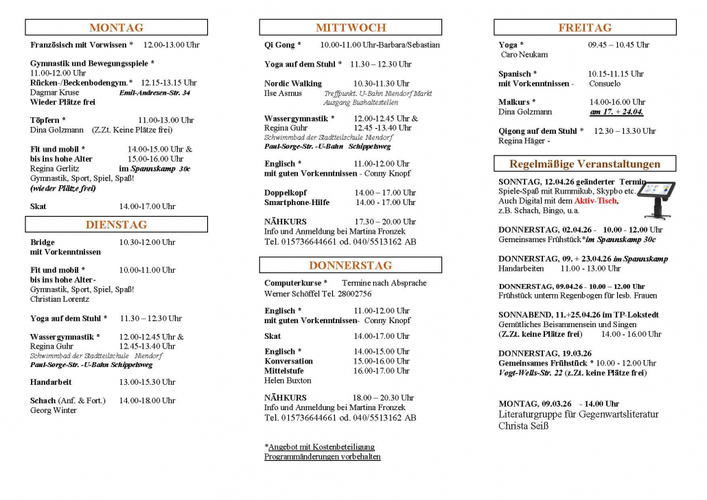 Der Treffpunkt entfaltet seine wahre Größe, indem er ein abwechslungsreiches Programm anbietet, das so vielfältig ist, wie das Interesse der Bewohner in Lokstedt und den umliegenden Stadtteilen.