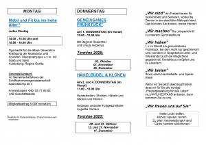Die Seniorengruppe Stellingen/Eidelstedt bietet den Stadtteilbewohnern die Möglichkeit neue Kontakte mit aktiven und geselligen Menschen zu knüpfen. Wir bieten unseren Teilnehmern, vielfältige gemeinsame Aktivitäten, wie z.B. Frühstück, Klönschnack, Schreibwerkstatt, Yoga auf dem Stuhl oder einen Handarbeits- und Spielekreis.